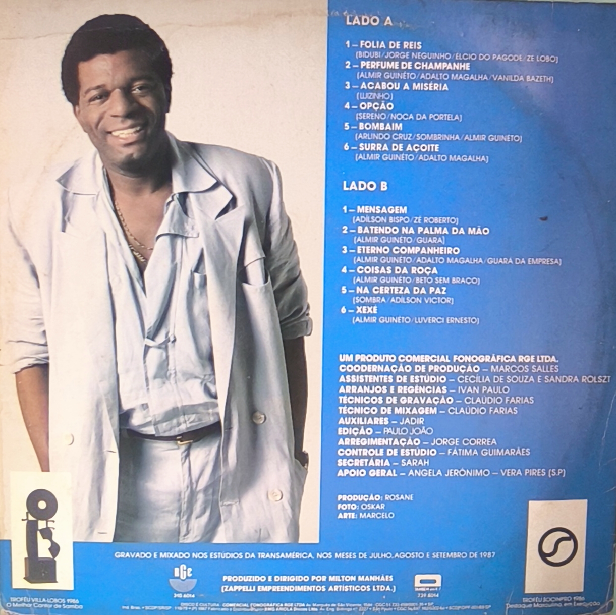 Perfume de Champanhe”, lançado por Almir Guineto em 1987 pela RGE, é um LP fundamental do samba de raiz, consolidando o cantor após sua saída do Fundo de Quintal. O álbum destaca a voz marcante e o banjo característico de Guineto, trazendo sucessos de malandragem e amor, consolidando sua trajetória iniciada no Salgueiro.