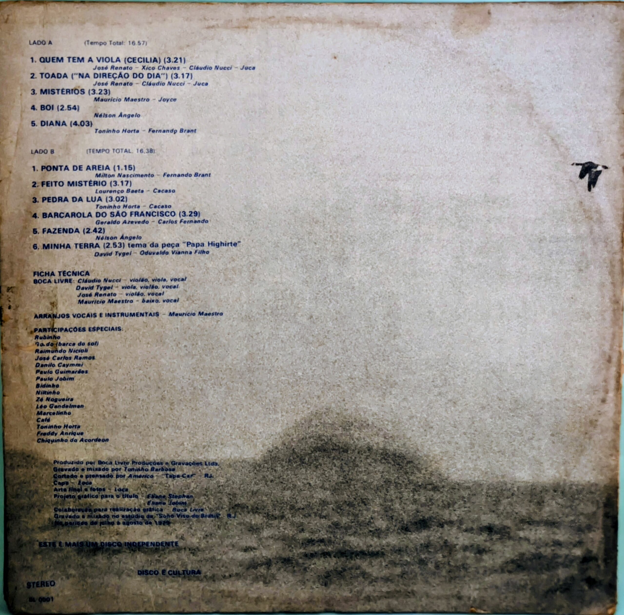 O LP de estreia do Boca Livre, lançado de forma independente em 1979, foi um marco na MPB, vendendo mais de 100 mil cópias com um estilo vocal refinado e arranjos próprios. A música “Toada” (composta por Zé Renato, Cláudio Nucci e Juca Filho) é o destaque, inspirada por uma garota loira em Minas Gerais