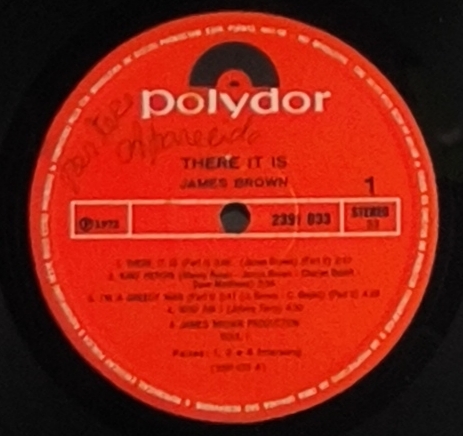There It Is, lançado em 9 de junho de 1972 pela Polydor Records,, é o 38º álbum de estúdio de James Brown e um marco do funk no início dos anos 70. Produzido com arranjos de Dave Matthews, o LP alcançou o 10º lugar na parada R&B e 60º na Billboard 200,, destacando-se pela faixa-título que alcançou o 4º lugar no R&B.