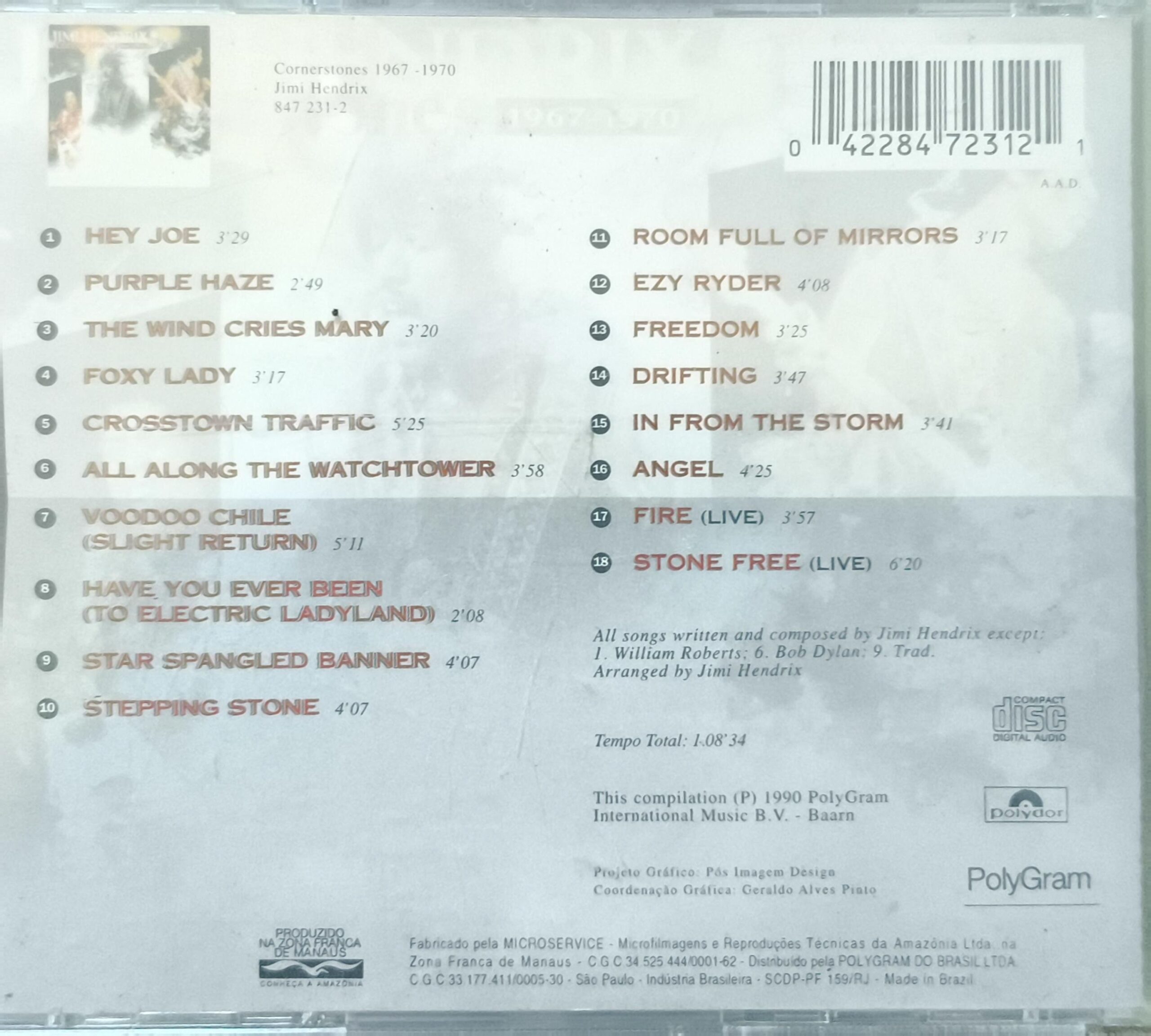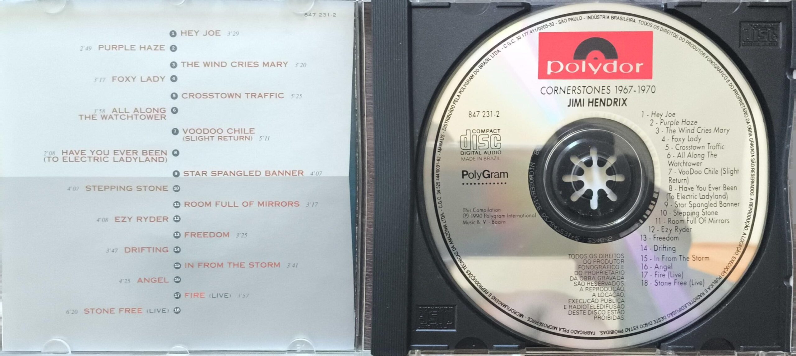 Cornerstones 1967–1970″ (1990) é uma coletânea fundamental da Polydor que destaca 18 clássicos de Jimi Hendrix, incluindo faixas de estúdio e performances ao vivo no Atlanta International Pop Festival de 1970. Atingiu a 5ª posição nas paradas do Reino Unido, destacando-se por incluir a versão de estúdio de “The Star Spangled Banner“.