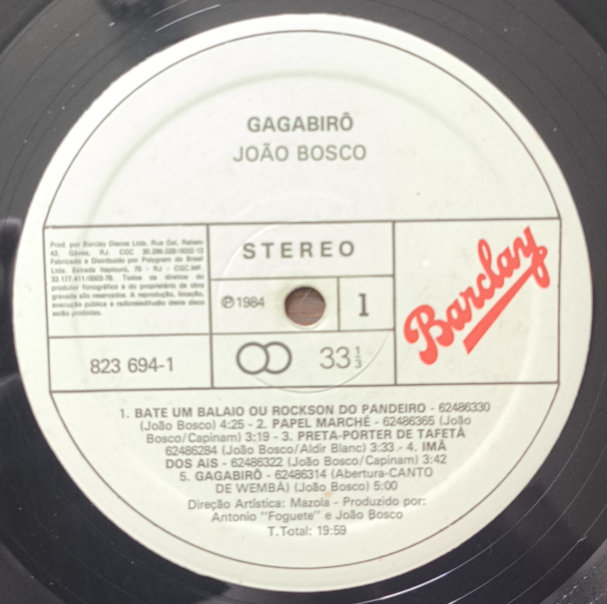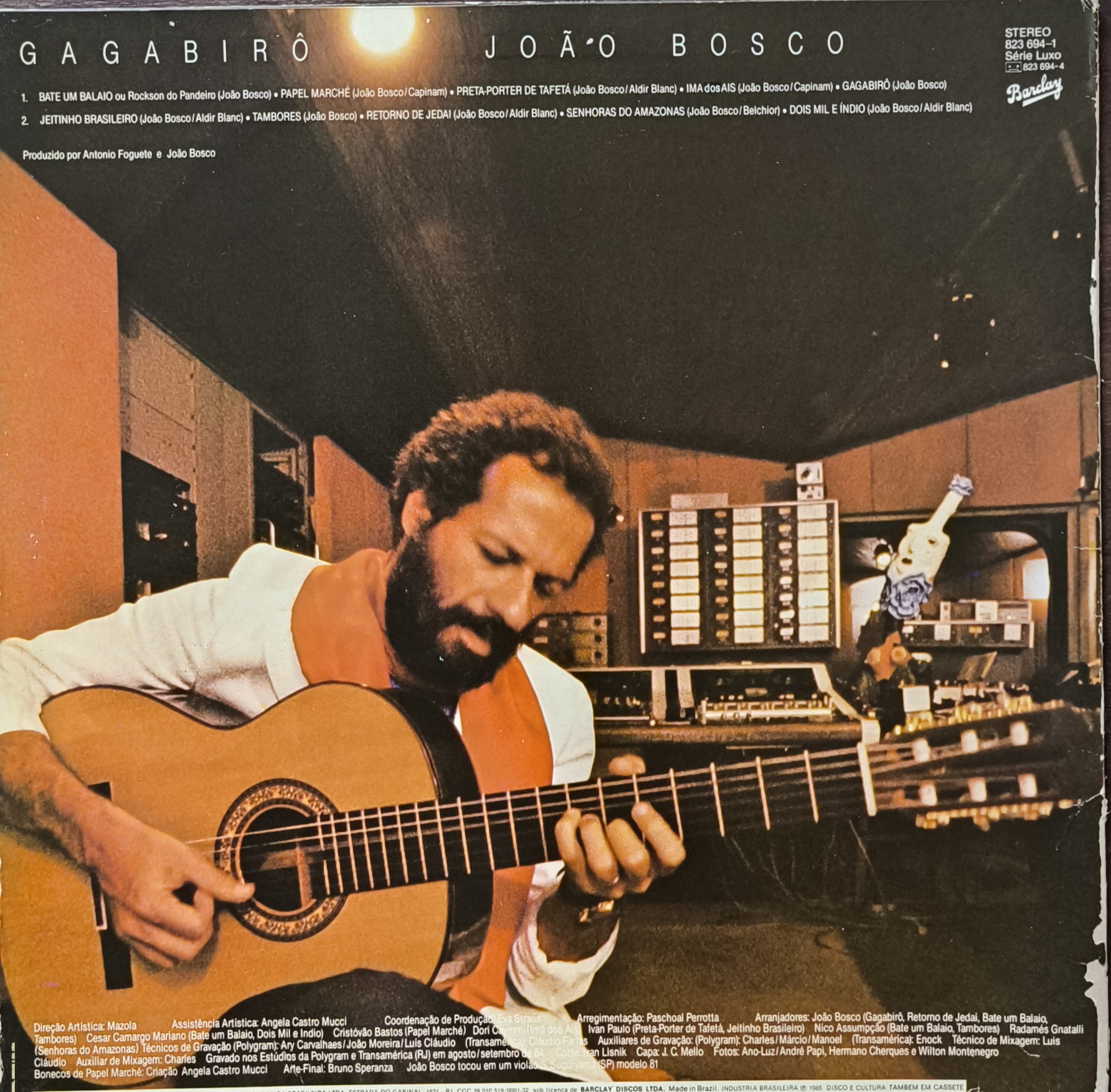 Lançado em 1984 pela gravadora Barclay, Gagabirô é o décimo álbum de estúdio de João Bosco, consolidado como um clássico da MPB. Produzido por Antônio Foguete e pelo próprio João Bosco, o disco destaca-se pela faixa “Papel Machê”, além de “Bate um Balaio” e “Retorno”, com arranjos marcantes e letras profundas.