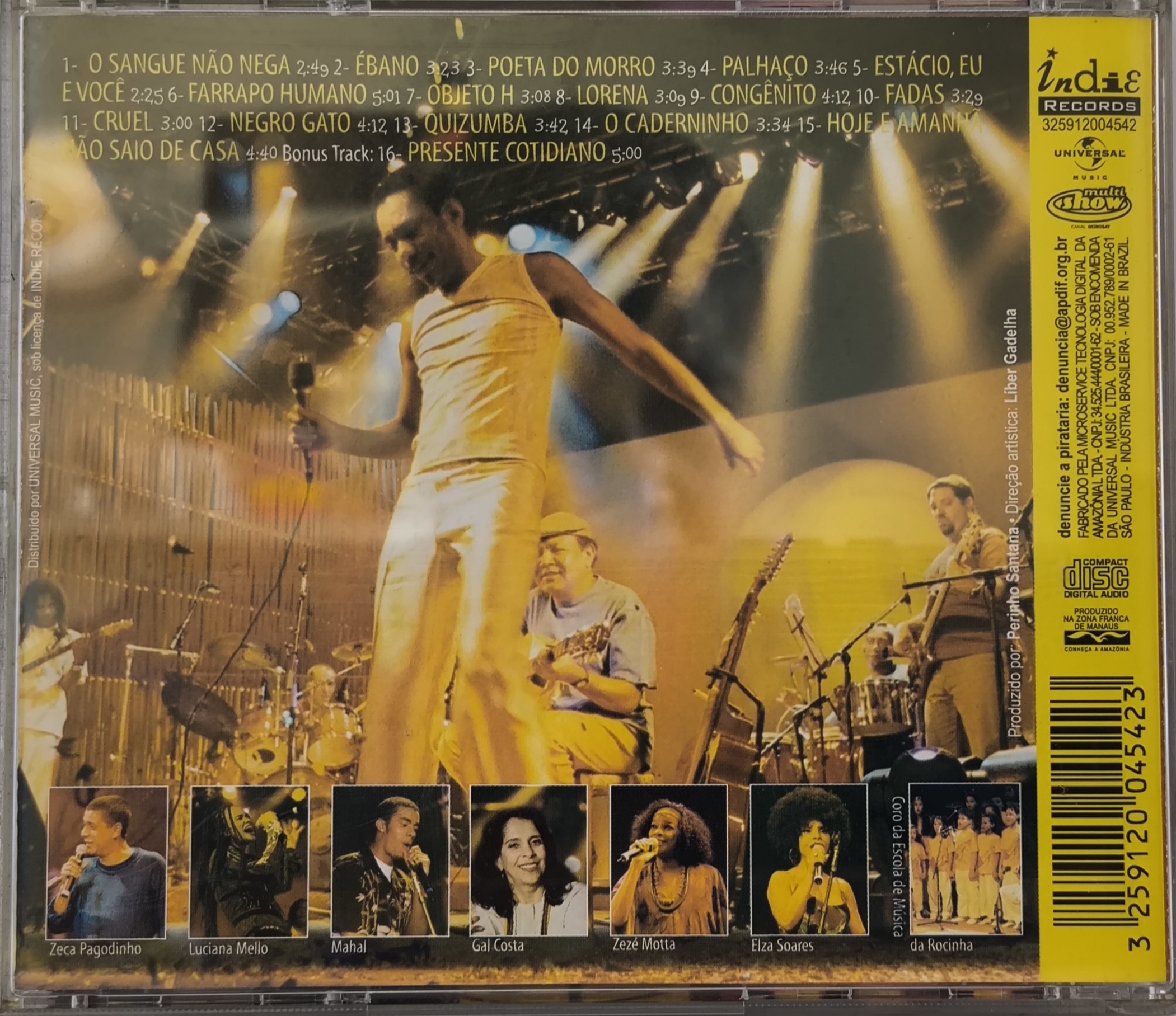 • Repertório: Inclui sucessos como “Pérola Negra”, “Negro Gato” e “Congênito”, além de regravações como “Palhaço” (Nelson Cavaquinho) e “O Caderninho” (Olmir Stocker).