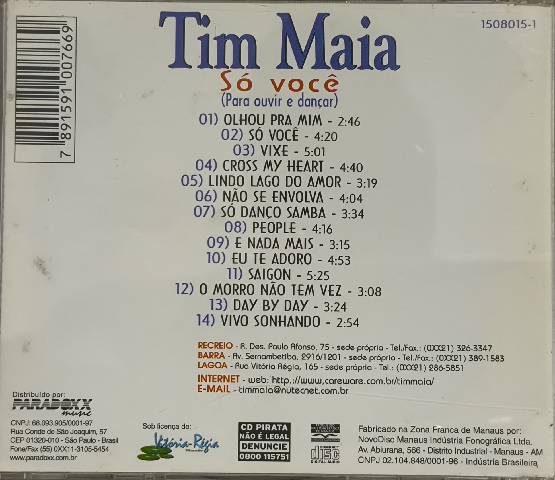 ó Você”, regravada por Tim Maia (lançada no álbum de 1997), foi originalmente composta por Vinícius Cantuária em 1984. A canção é um clássico romântico sobre a satisfação de encontrar o amor verdadeiro, popularizada também na voz de Fábio Jr.. Tim Maia a incluiu em seu repertório de sucessos ao lado de baladas soul e funk.