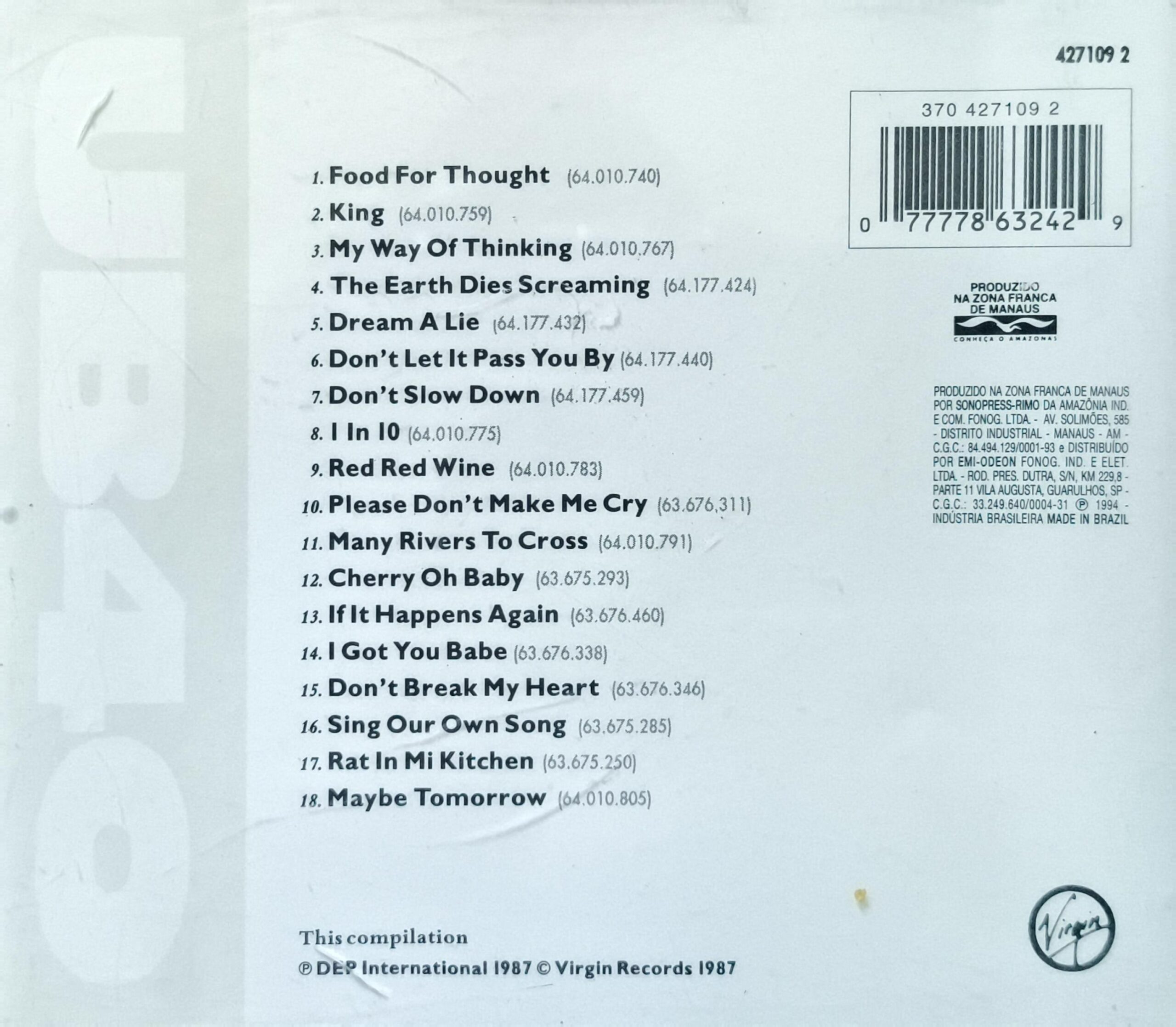 O CD The Best of UB40 – Volume One, lançado em 1987, é a coletânea definitiva dos sucessos iniciais da banda britânica de reggae, cobrindo hits de 1980 a 1986, como “Red Red Wine” e “Food for Thought”. A capa traz o pub Eagle and Tun de Birmingham, frequentado pela banda. Em 1995, foi relançado junto ao Volume Two